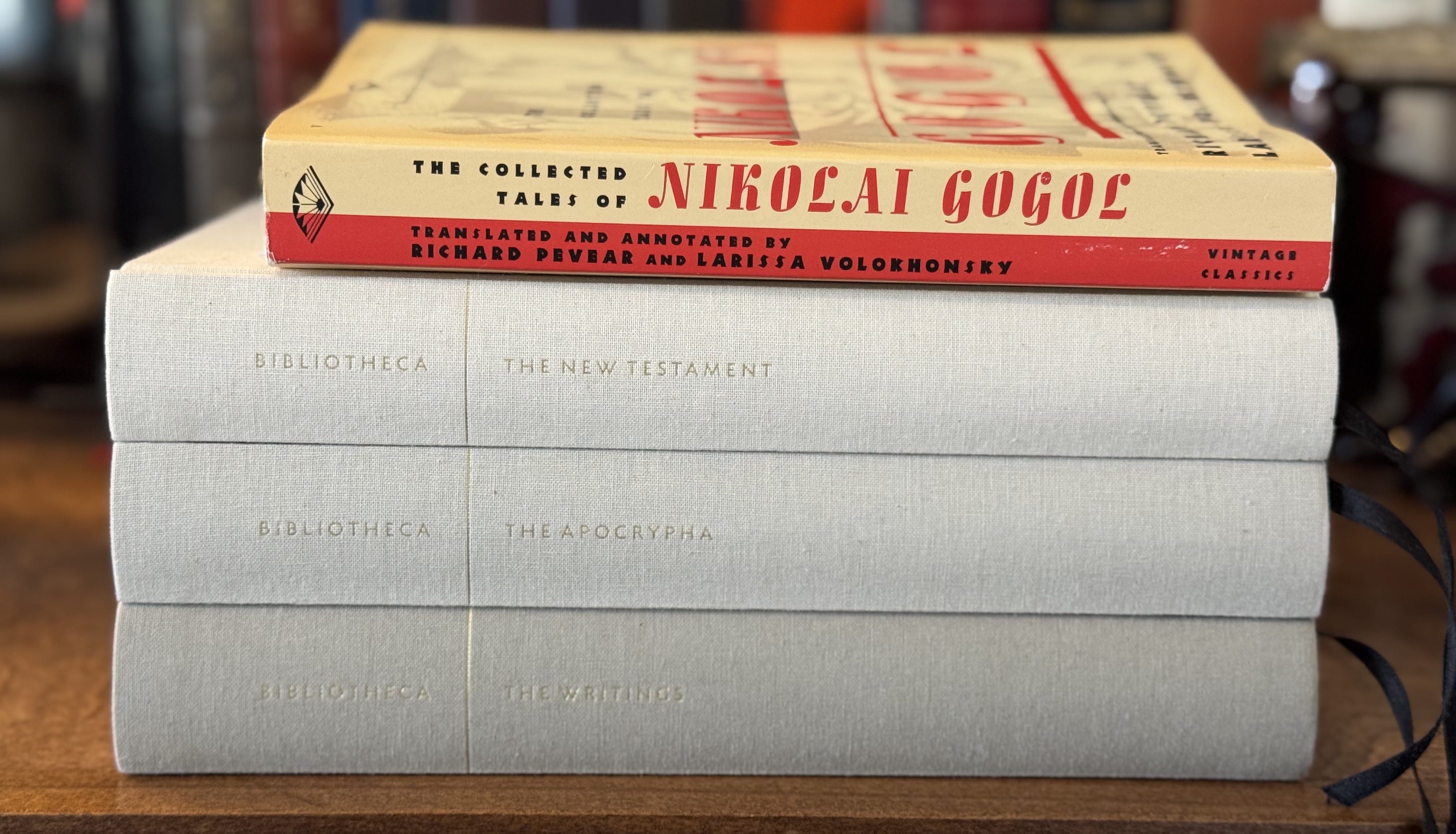 The Gogol book is for a February 2nd meeting of the Short Great Books reading group where we’ll be discussing Nikolai Gogol’s The Overcoat. That is the only story I’ll be reading from the full collected tales.