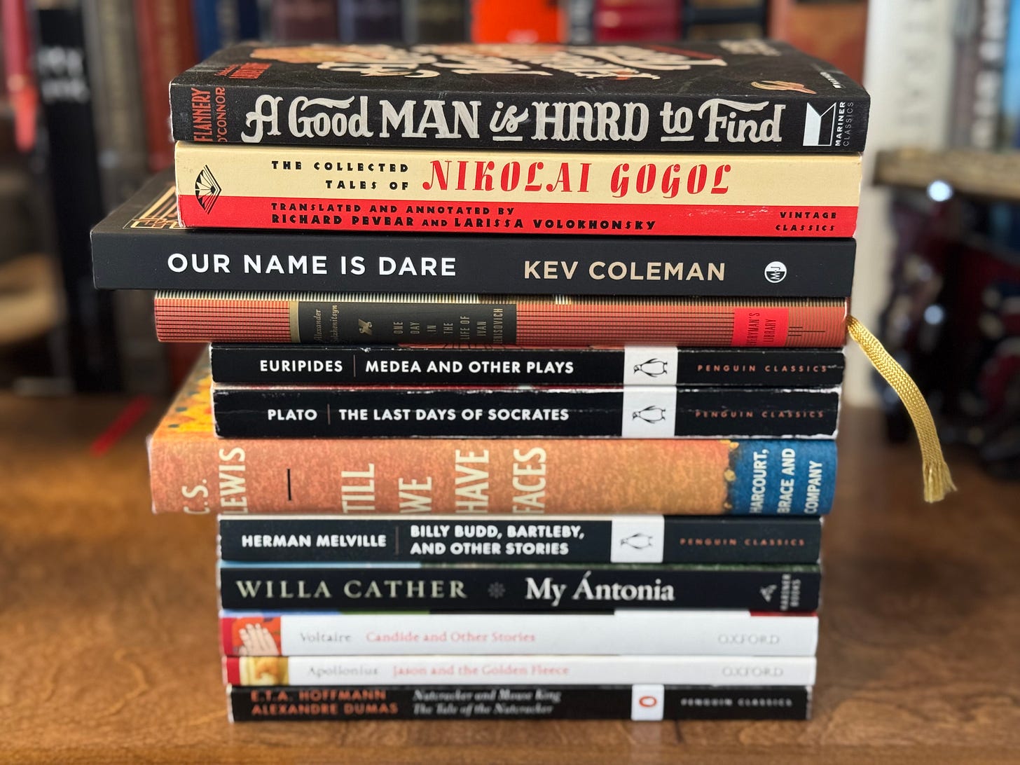 Here’s the list of books for 2026. In the photo above, the books are in order from top to bottom. We’ll start with A Good Man is Hard to Find in January and end with Nutcracker and the Mouse King in December: