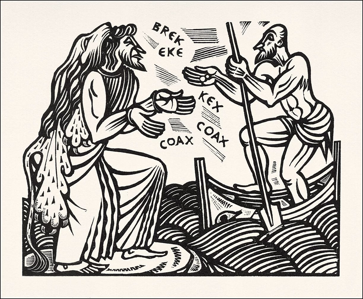 It took me 5 comedy plays by Aristophanes to begin to enjoy them. This was the 5th. It wasn’t as crude or banal as the first four I read (Clouds, Birds, Lysistrata, Women of the Assembly). I really enjoyed this one. Dionysus journeys to Hades to meet Euripides. A verbal contest ensues between the great tragedians Aeschylus and Euripides to determine who is the Best Tragic Poet. On the way to Hades, Dionysus hears the song of the Frogs, the title for this play.